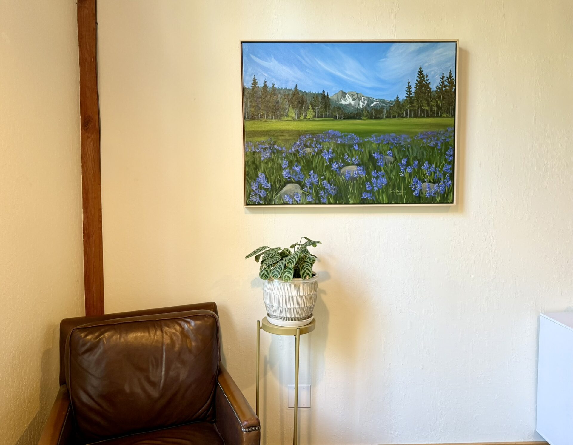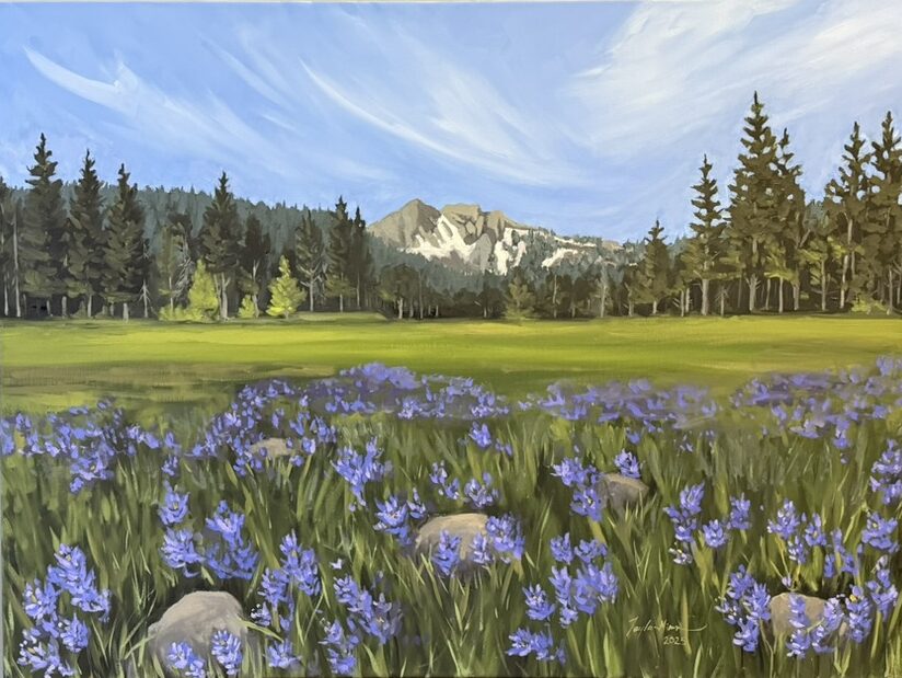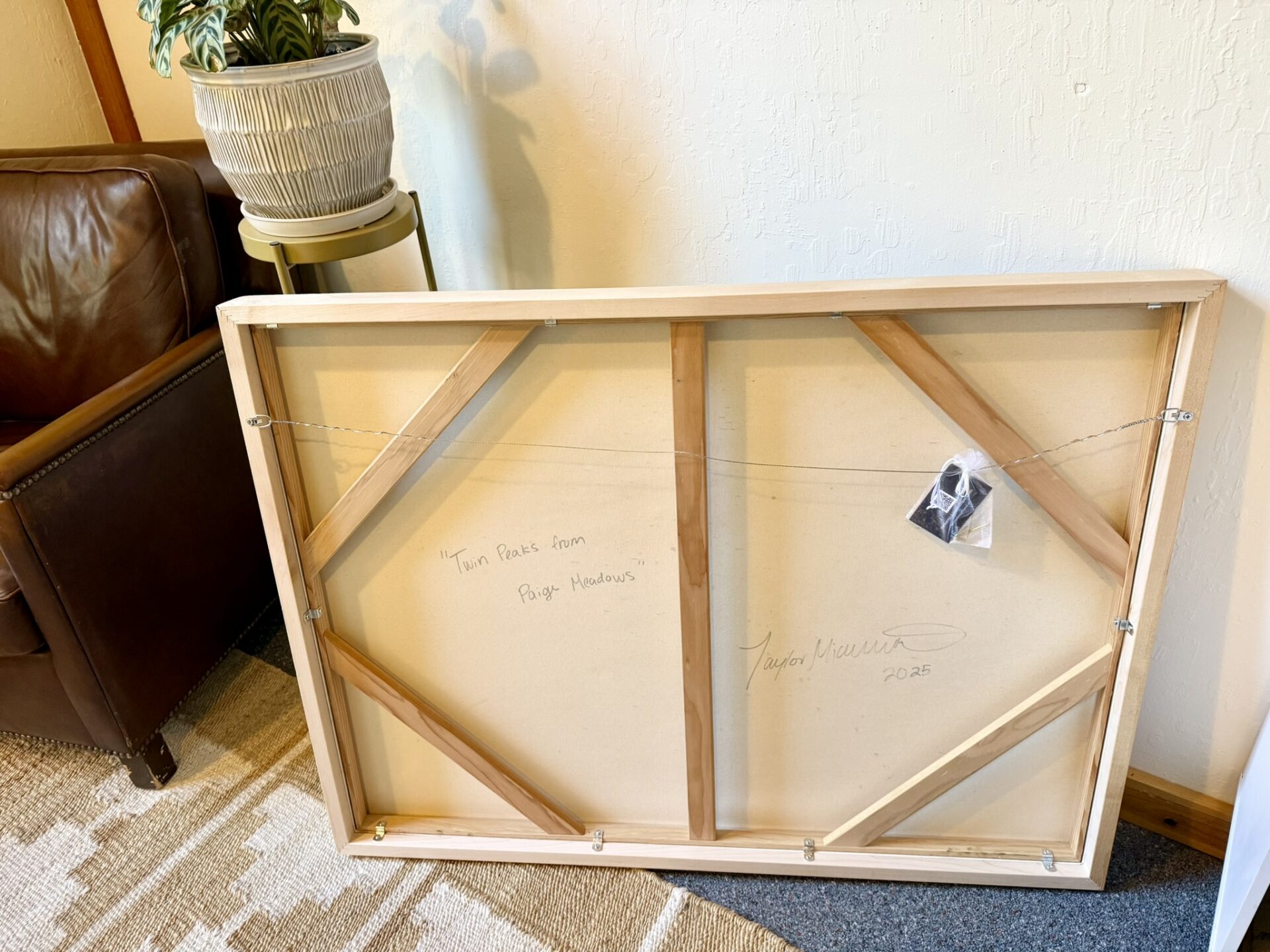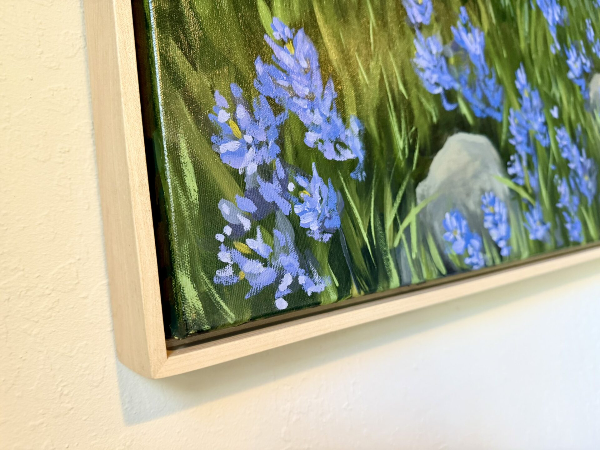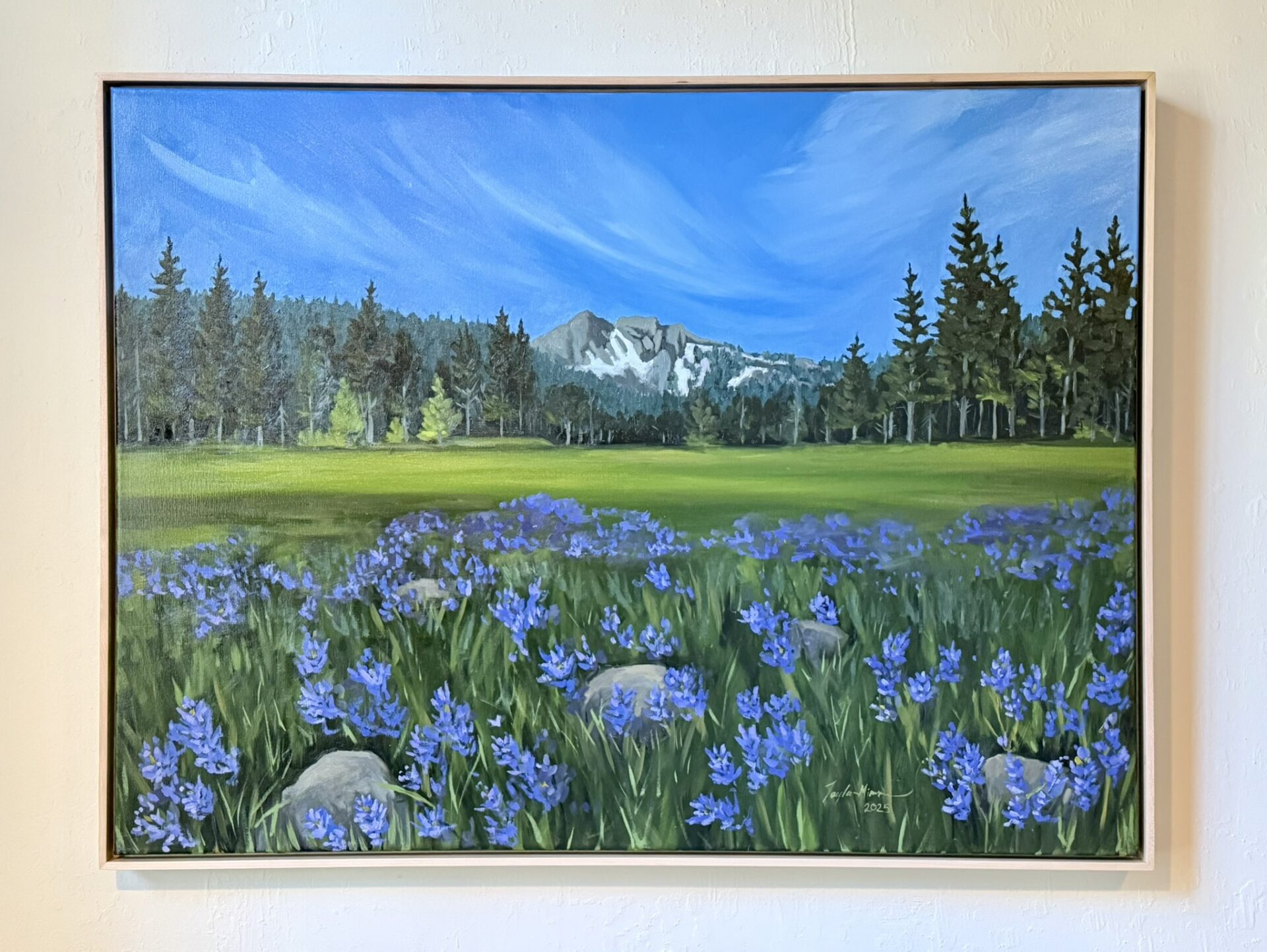 This painting is framed in a solid maple float frame. The frame measures 31x41x2.25 inches.